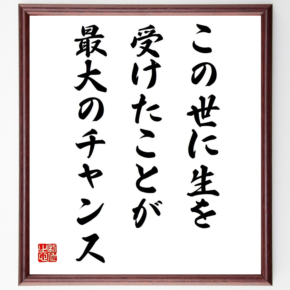 名言「この世に生を受けたことが最大のチャンス」手書き書道色紙額/受注後の毛筆直筆