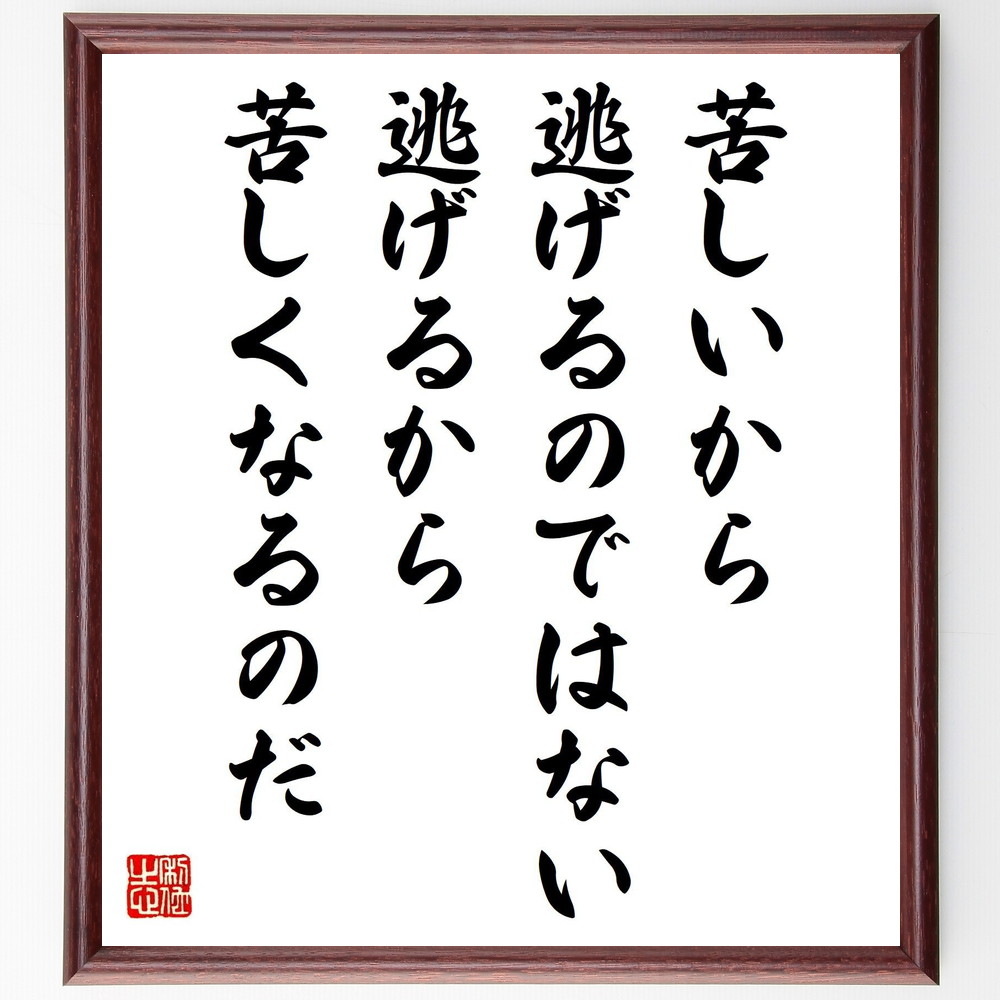 ウィリアム・ジェームズの名言「苦しいから逃げるのではない、逃げるから苦しくなるのだ」を、千言堂の専属書道家が気持ちを込めて手書き直筆いたします。この言葉(ひとこと)は名言集や本・書籍などで紹介されることも多く、座右の銘にされている方も多いようです。ぜひ、ご自宅の玄関、リビング、部屋、書斎、またビジネスを営む会社のオフィスや店舗の事務所、応接室などにお飾りください。大切な方への贈り物・プレゼントにもおすすめです。一点一点が直筆のため、パソコン制作のような完璧さはございませんが、手書きの良さを感じていただけます。当店では挑戦、努力、成功、幸福、感謝、成長、家族、仕事、自己啓発など様々なテーマから人生の糧となる名言、四字熟語、諺、故事成語、格言を厳選、毛筆で直筆、お届けしています。