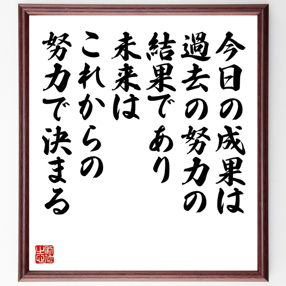 名言「今日の成果は過去の努力の結果であり、未来はこれからの努力で決まる」手書き書道色紙額/受注後の毛筆直筆