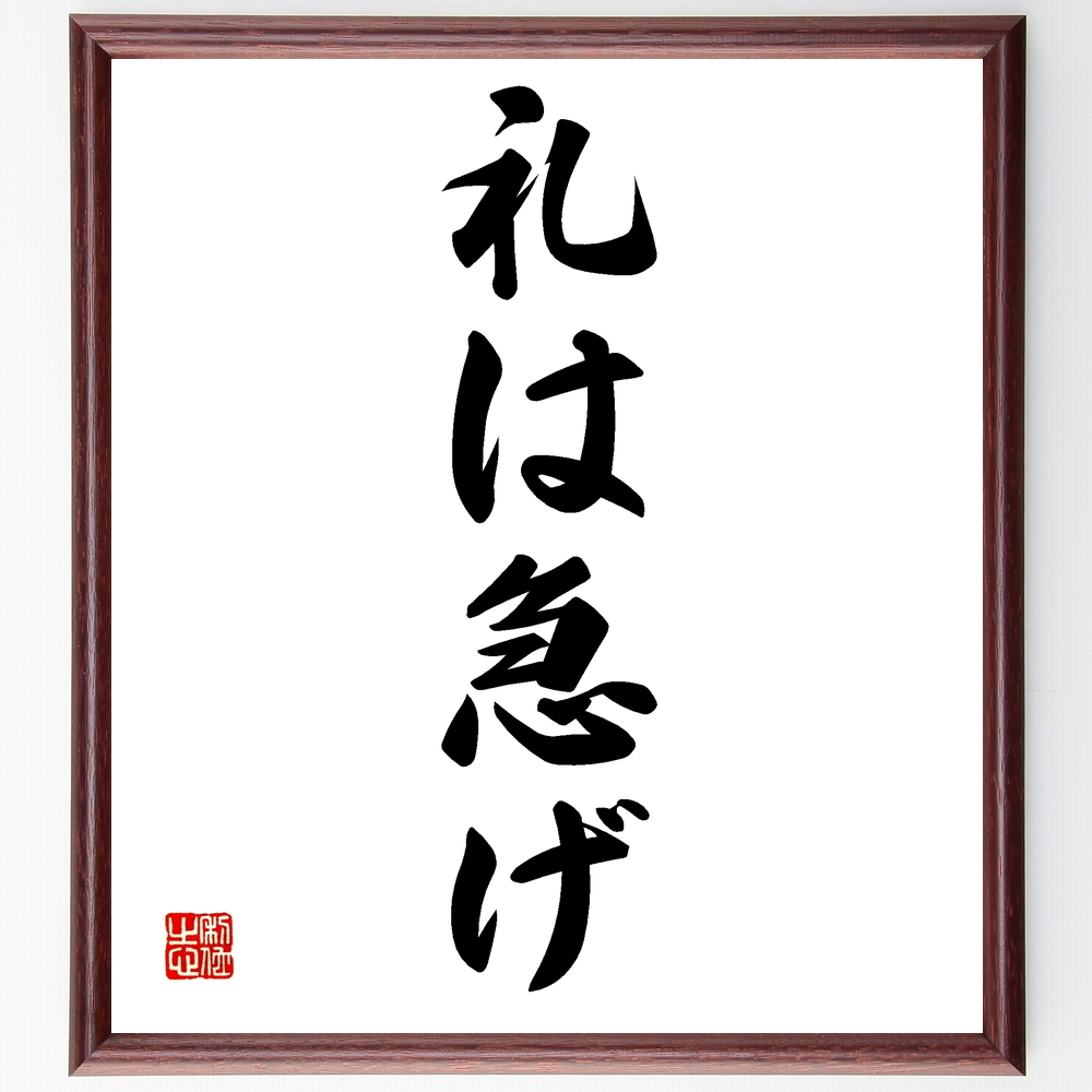 名言「礼は急げ」手書き書道色紙額/受注後の毛筆直筆