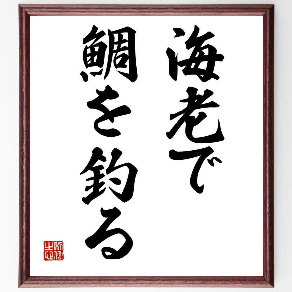 名言「海老で鯛を釣る」手書き書道色紙額/受注後の毛筆直筆