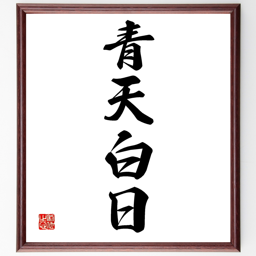 四字熟語「青天白日」手書き書道色紙額/受注後の毛筆直筆
