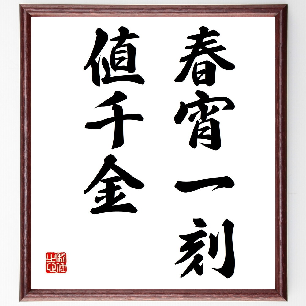 名言「春宵一刻値千金」手書き書道色紙額/受注後の毛筆直筆