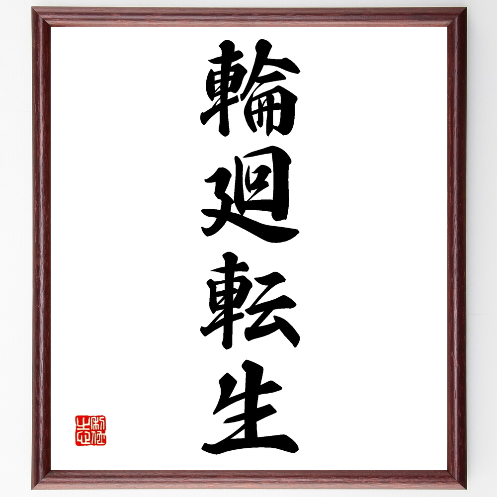 四字熟語「輪廻転生」手書き書道色紙額/受注後の毛筆直筆