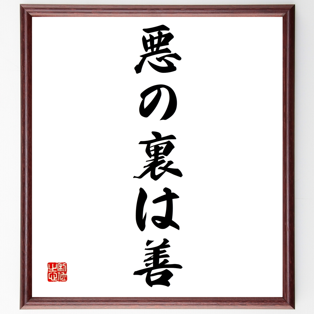 名言「悪の裏は善」手書き書道色紙額/受注後の毛筆直筆