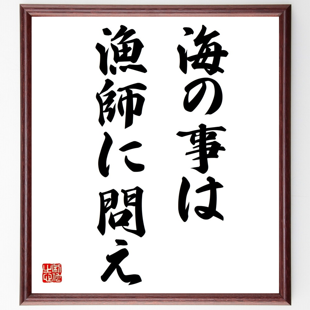 名言「海の事は漁師に問え」手書き書道色紙額/受注後の毛筆直筆
