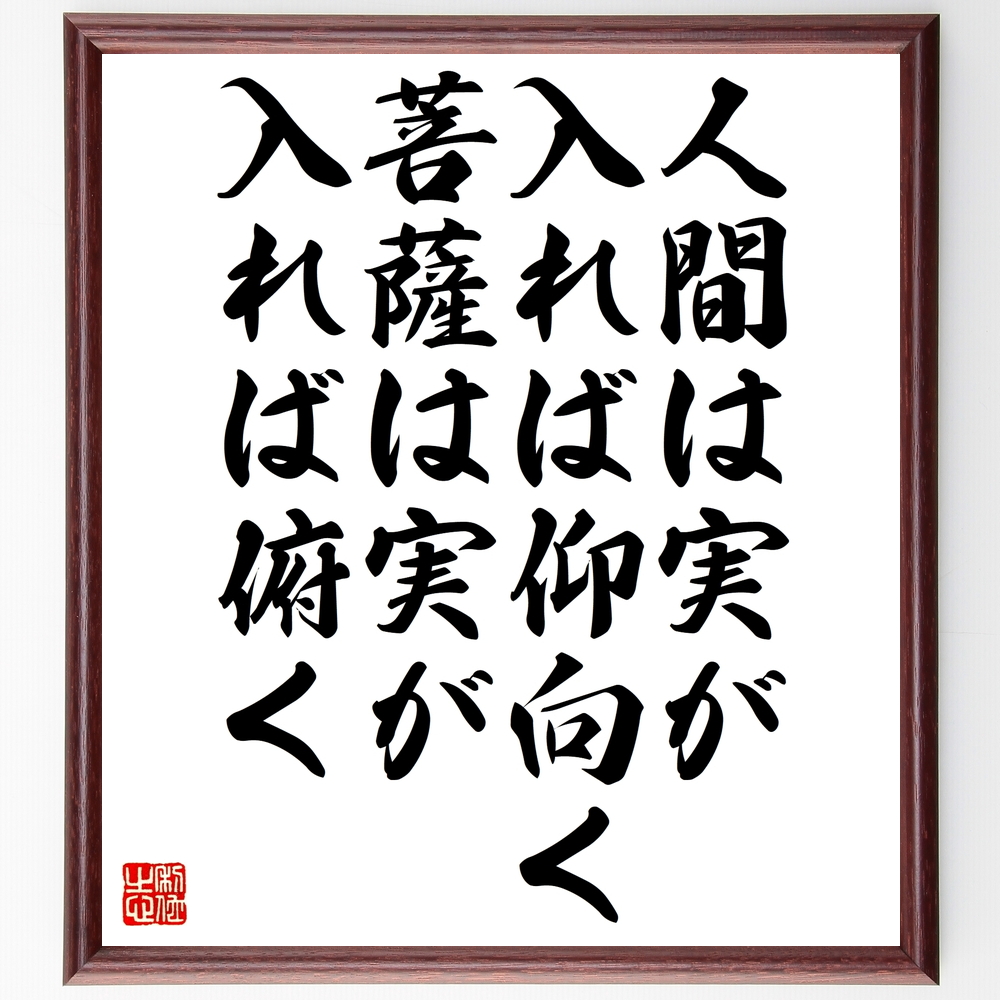名言「人間は実が入れば仰向く、菩薩は実が入れば俯く」手書き書道色紙額/受注後の毛筆直筆