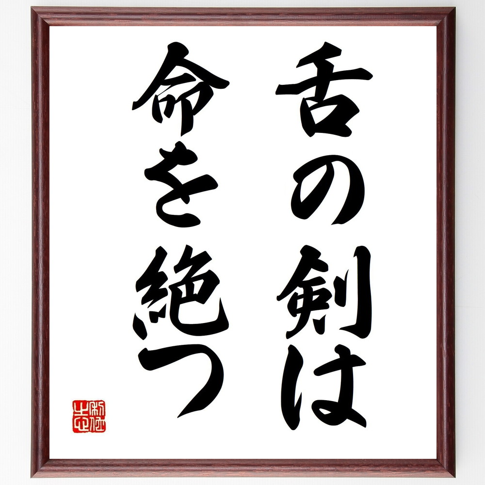 名言「舌の剣は命を絶つ」手書き書道色紙額/受注後の毛筆直筆