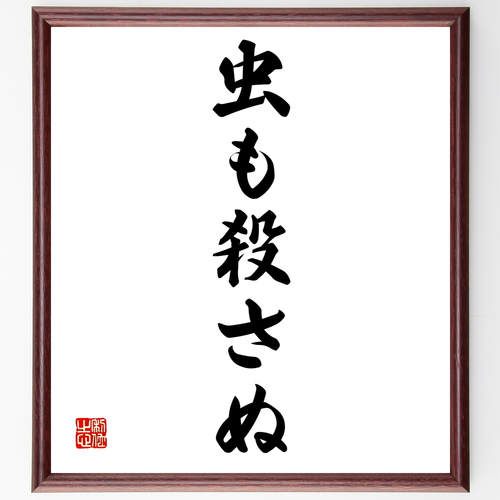 名言「虫も殺さぬ」手書き書道色紙額/受注後の毛筆直筆