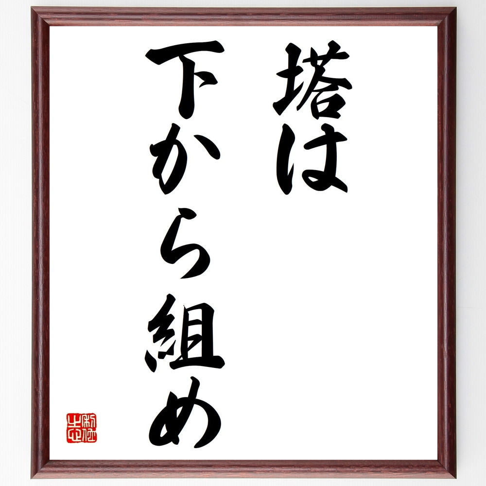 名言「塔は下から組め」手書き書道色紙額/受注後の毛筆直筆