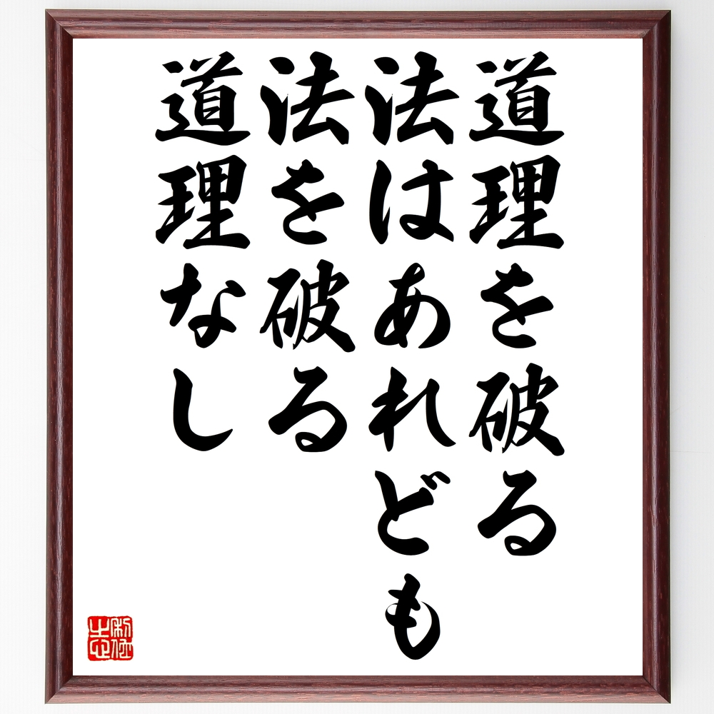 名言「道理を破る法はあれども法を破る道理なし」手書き書道色紙額/受注後の毛筆直筆