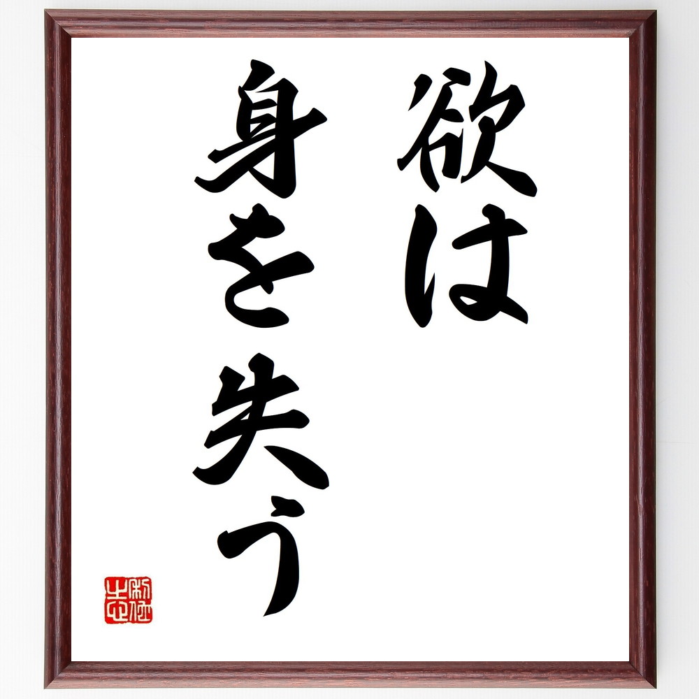 名言「欲は身を失う」手書き書道色紙額/受注後の毛筆直筆