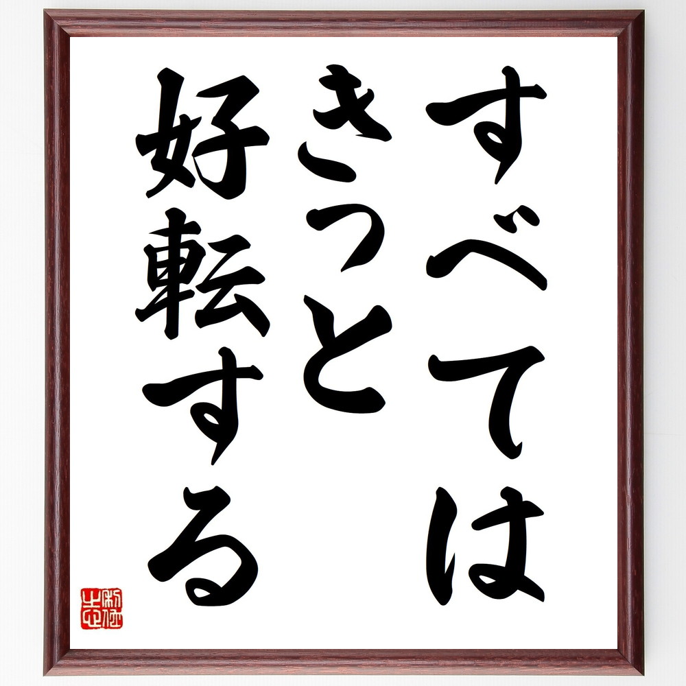 ガンディー(ガンジー)の名言「すべてはきっと好転する」手書き書道色紙額/受注後の毛筆直筆