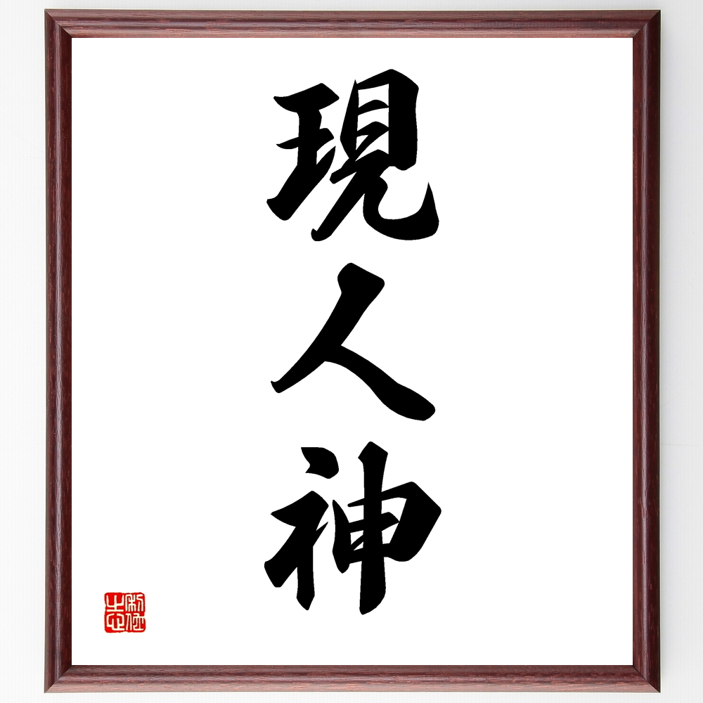 三字熟語「現人神」手書き書道色紙額/受注後の毛筆直筆