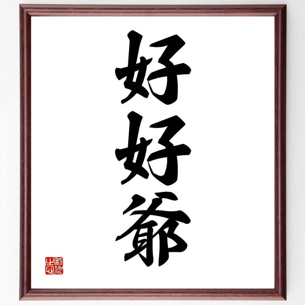 三字熟語「好好爺」手書き書道色紙額/受注後の毛筆直筆