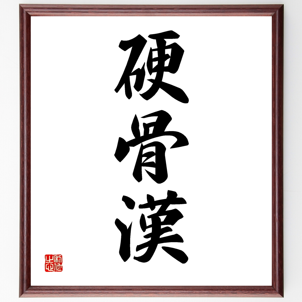 三字熟語「硬骨漢」手書き書道色紙額/受注後の毛筆直筆