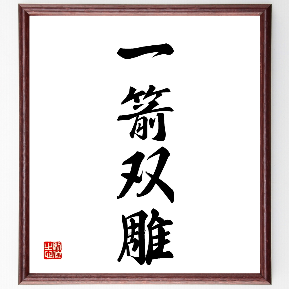 四字熟語「一箭双雕」手書き書道色紙額/受注後の毛筆直筆