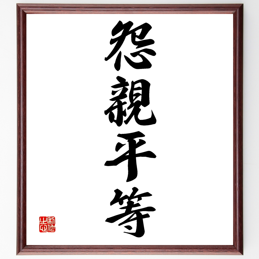 四字熟語「怨親平等」手書き書道色紙額/受注後の毛筆直筆