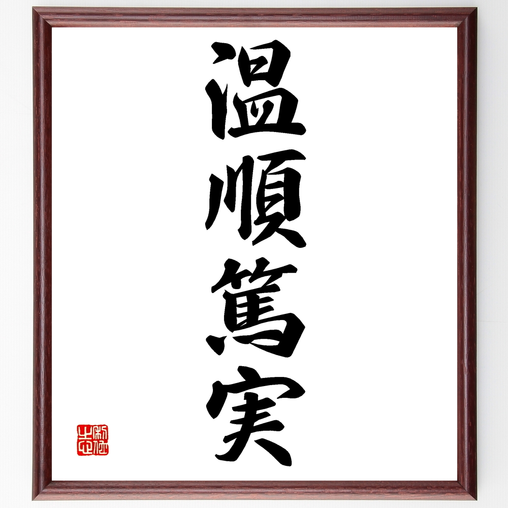 四字熟語「温順篤実」手書き書道色紙額/受注後の毛筆直筆