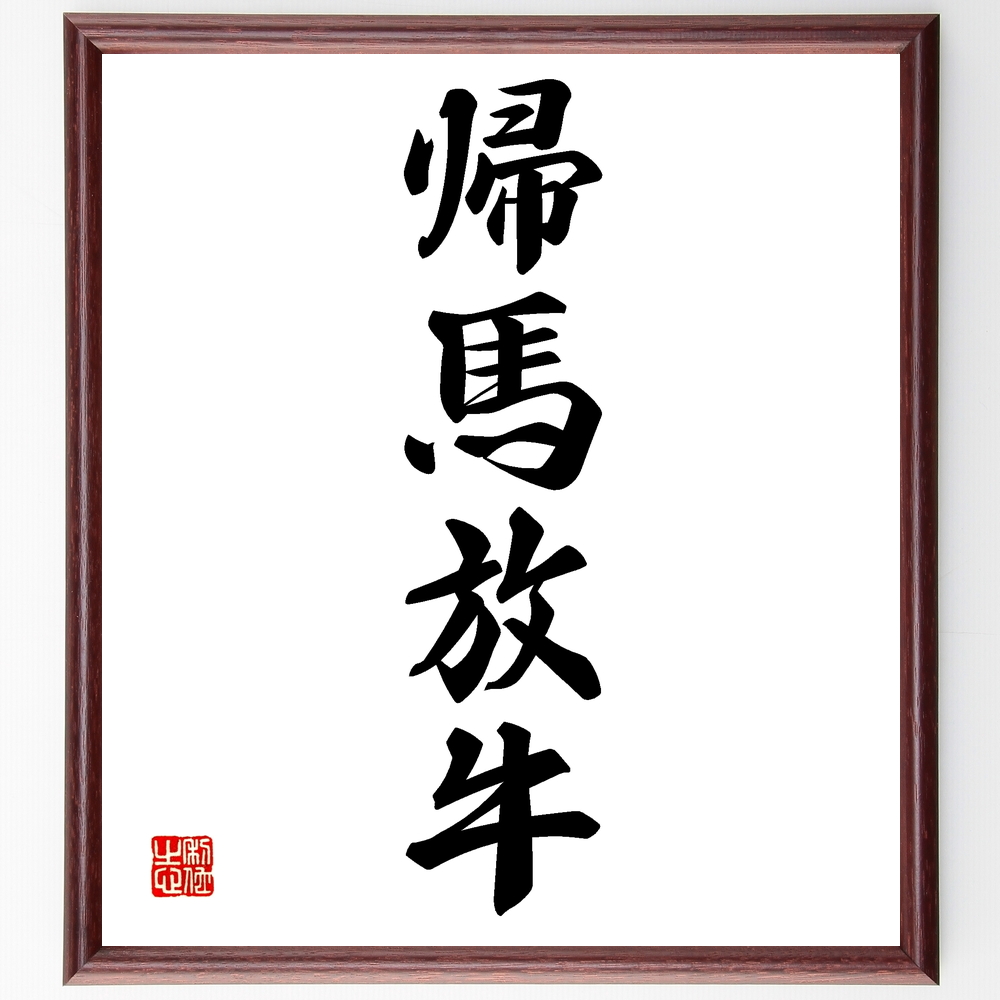 四字熟語「帰馬放牛」手書き書道色紙額/受注後の毛筆直筆