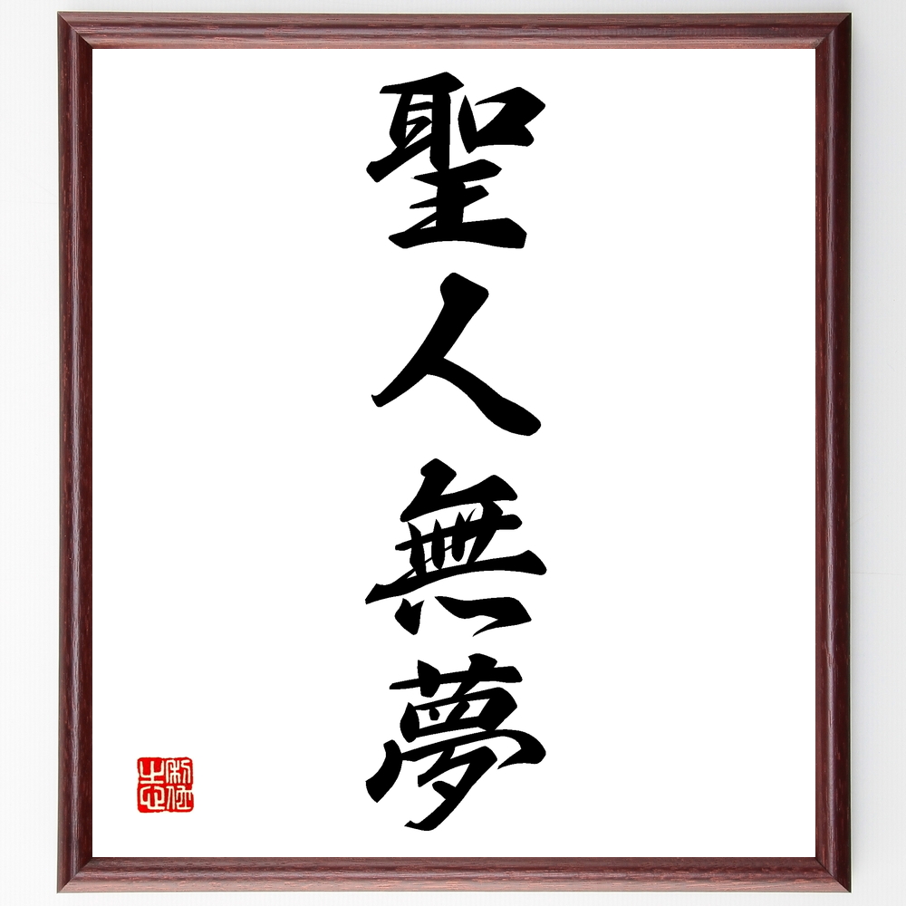 四字熟語「聖人無夢」手書き書道色紙額/受注後の毛筆直筆