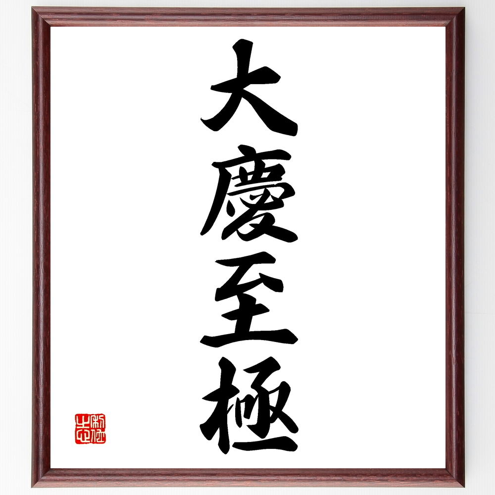 四字熟語「大慶至極」手書き書道色紙額/受注後の毛筆直筆