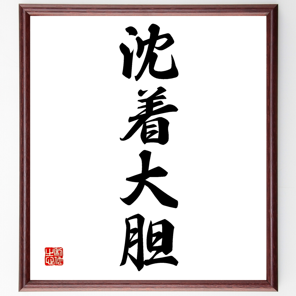 四字熟語「沈着大胆」手書き書道色紙額/受注後の毛筆直筆