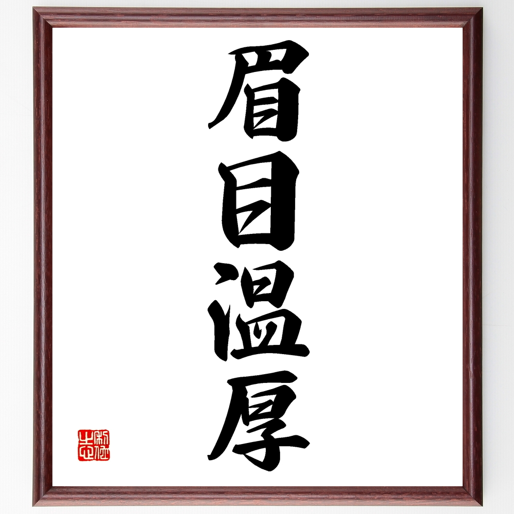 四字熟語「眉目温厚」手書き書道色紙額/受注後の毛筆直筆