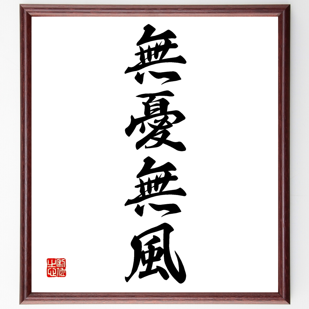 四字熟語「無憂無風」手書き書道色紙額/受注後の毛筆直筆