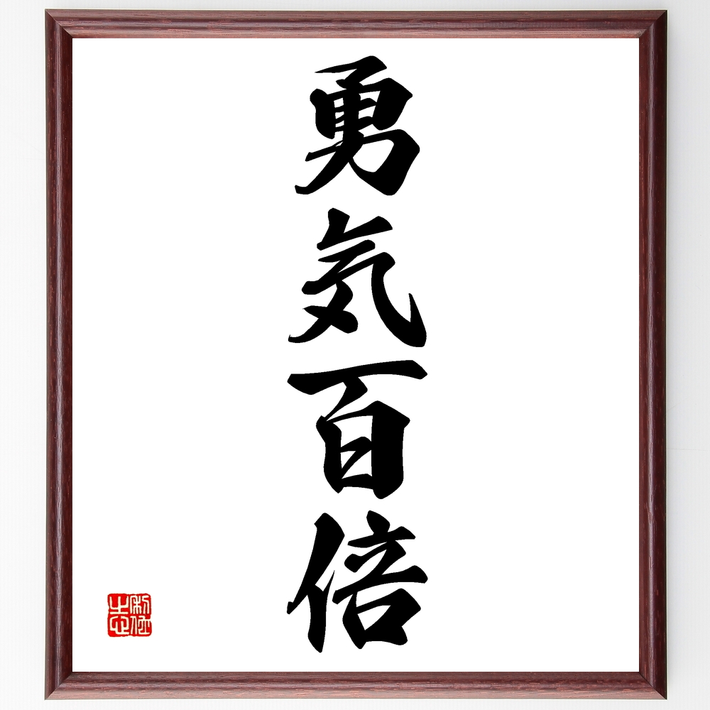 四字熟語「勇気百倍」手書き書道色紙額/受注後の毛筆直筆