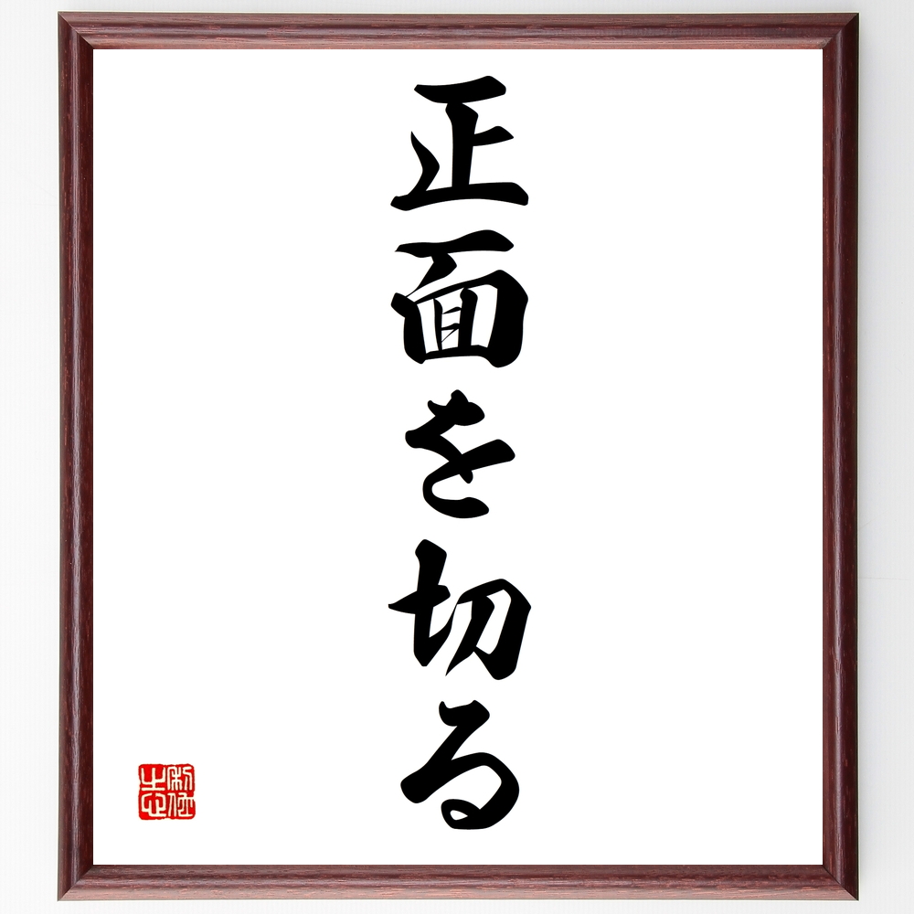 名言「正面を切る」手書き書道色紙額/受注後の毛筆直筆