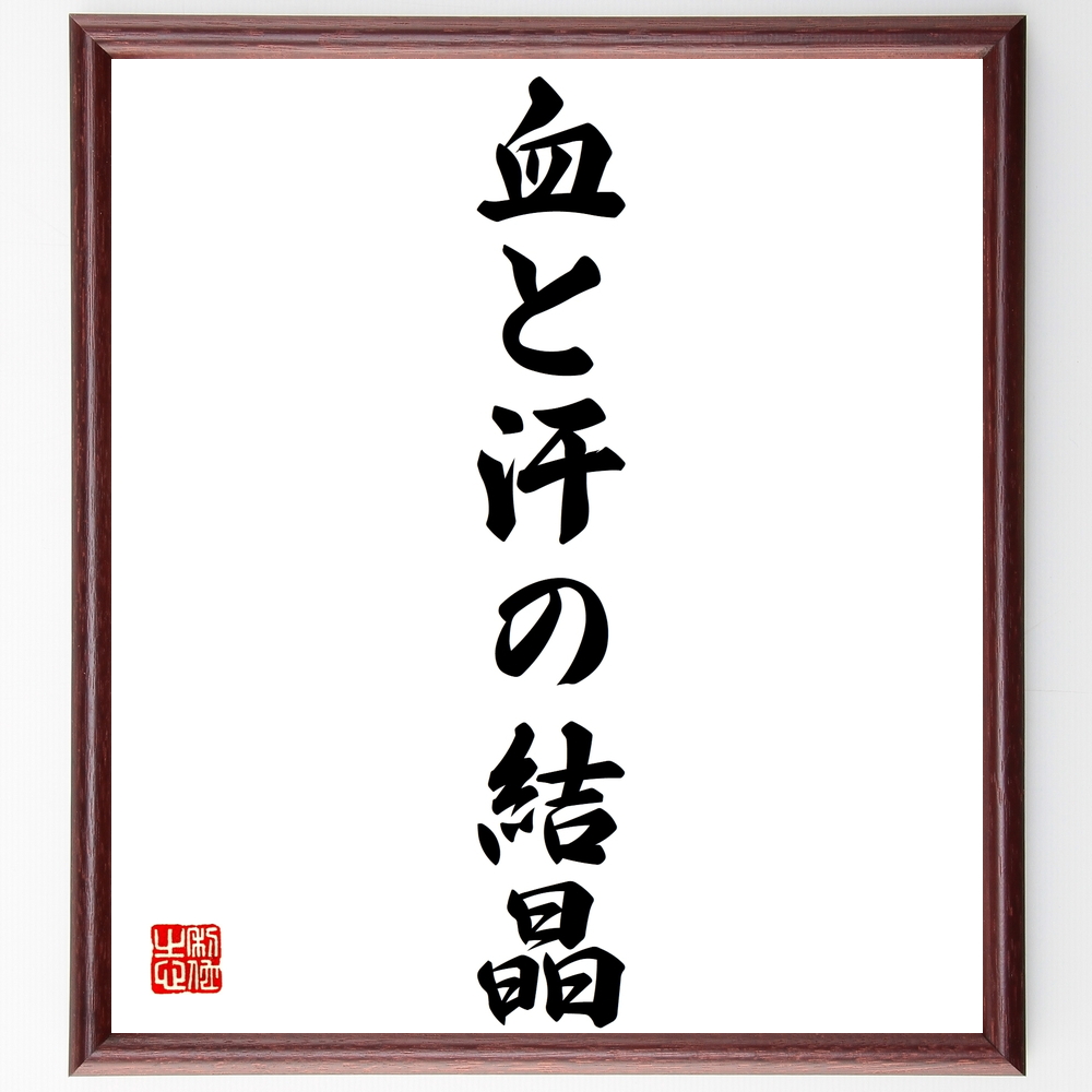 名言「血と汗の結晶」手書き書道色紙額/受注後の毛筆直筆