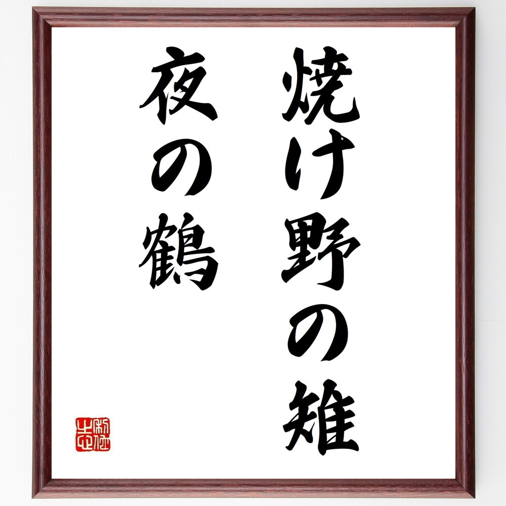 名言「焼け野の雉夜の鶴」手書き書道色紙額/受注後の毛筆直筆