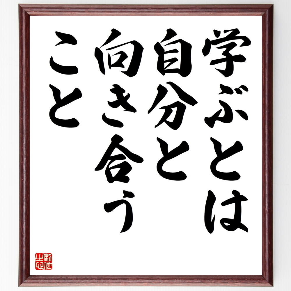 名言「学ぶとは自分と向き合うこと」手書き書道色紙額/受注後の毛筆直筆