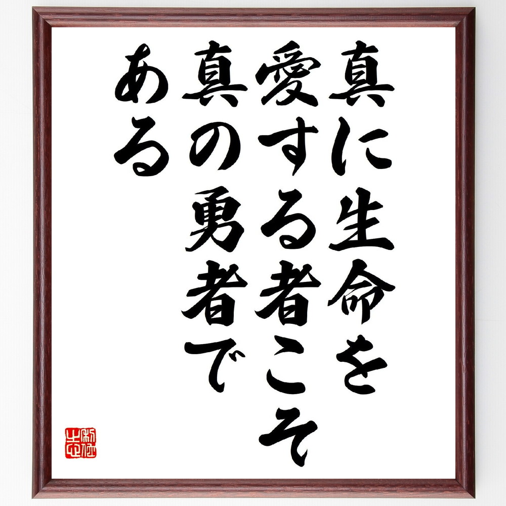 名言「真に生命を愛する者こそ、真の勇者である」手書き書道色紙額/受注後の毛筆直筆