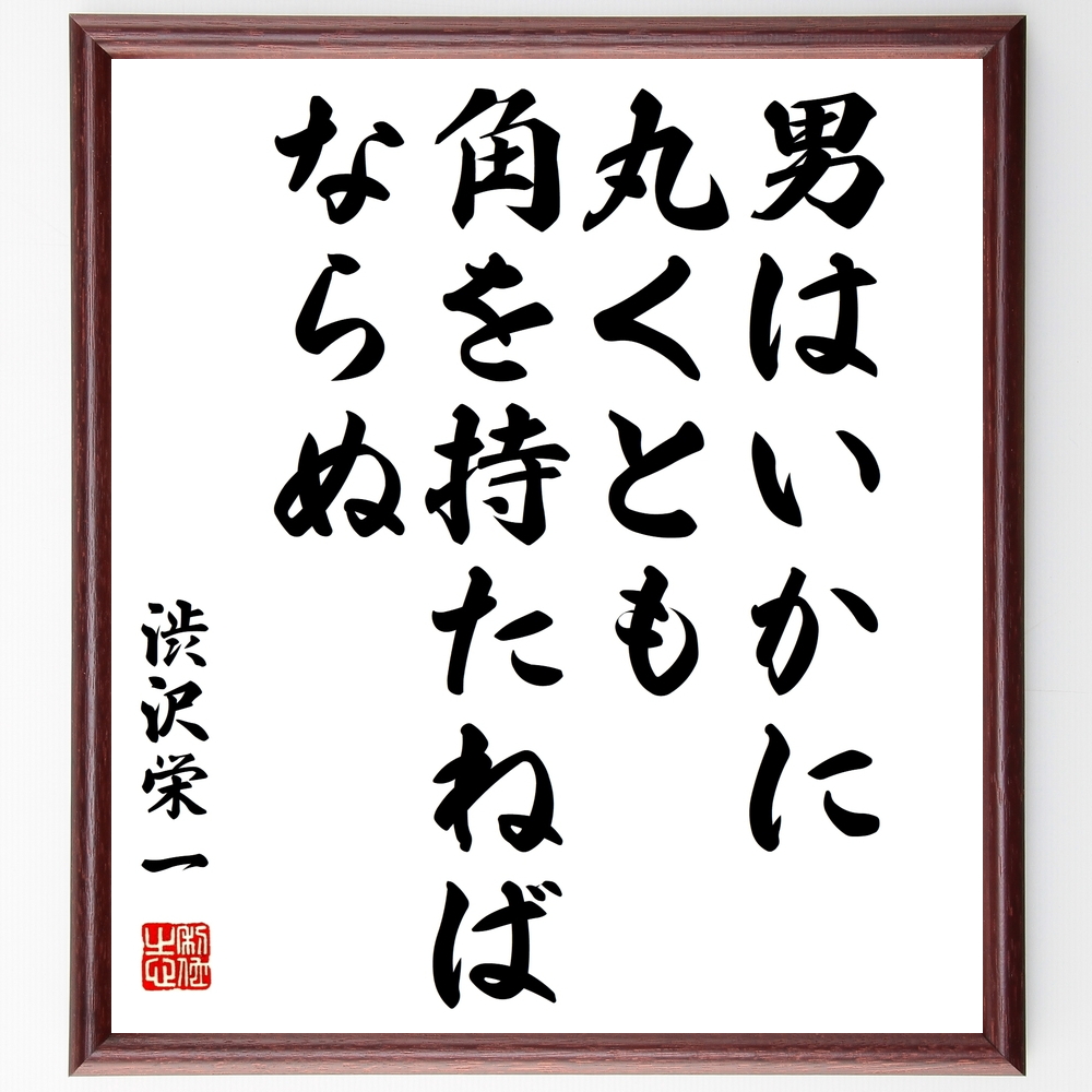 渋沢栄一の名言「男はいかに丸くとも、角を持たねばならぬ」手書き書道色紙額/受注後の毛筆直筆