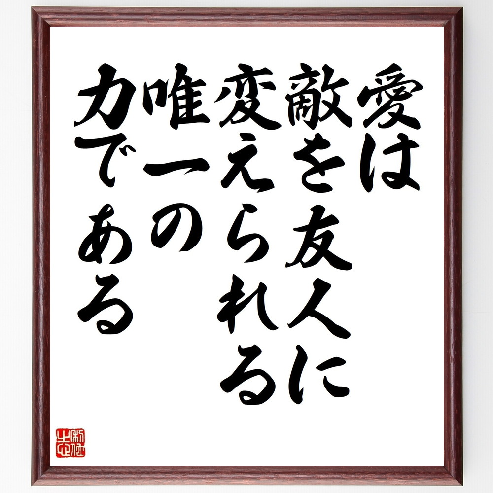 名言「愛は、敵を友人に変えられる唯一の力である」手書き書道色紙額/受注後の毛筆直筆