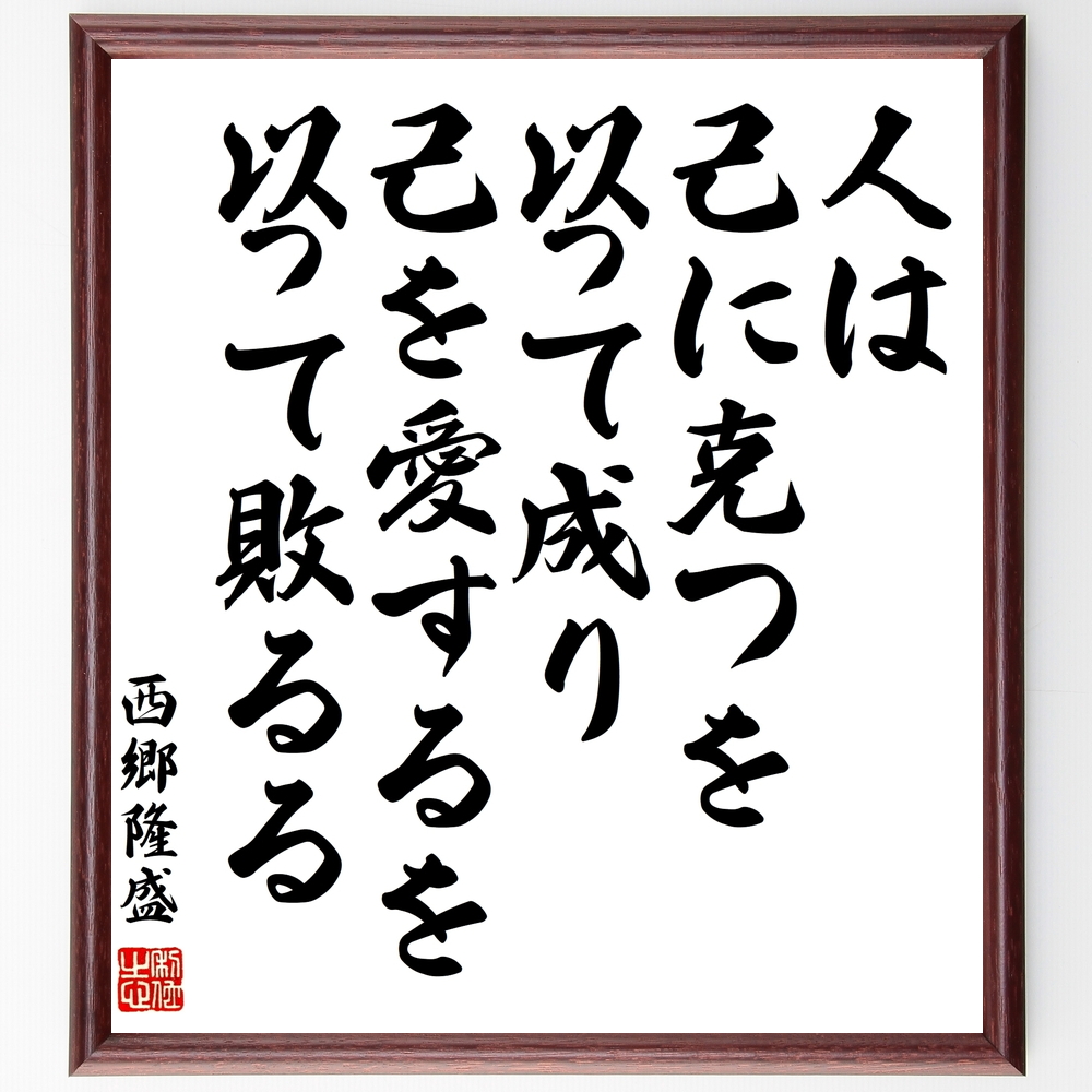 西郷隆盛の名言「人は、己に克つを以って成り、己を愛するを以って敗るる」手書き書道色紙額/受注後の毛筆直筆