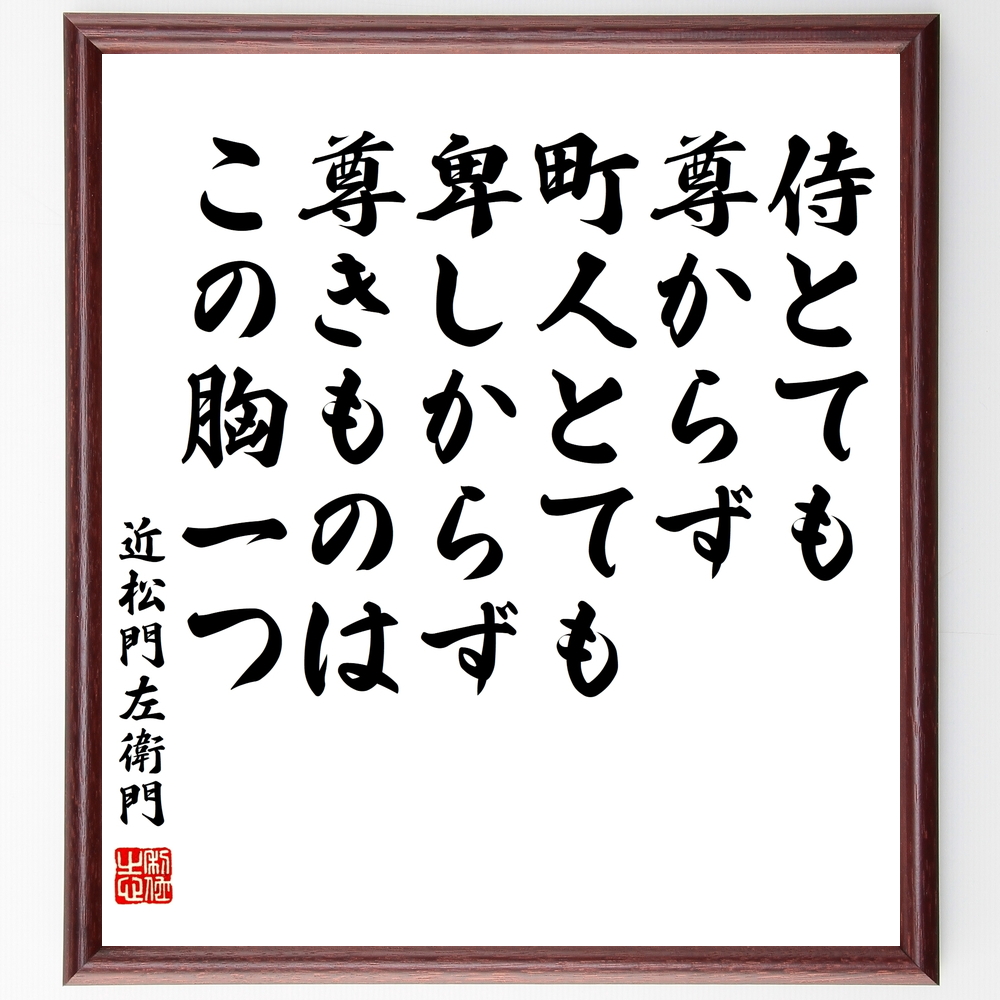 近松門左衛門の名言「侍とても尊からず、町人とても卑しからず、尊きものはこの胸一つ」手書き書道色紙額/受注後の毛筆直筆