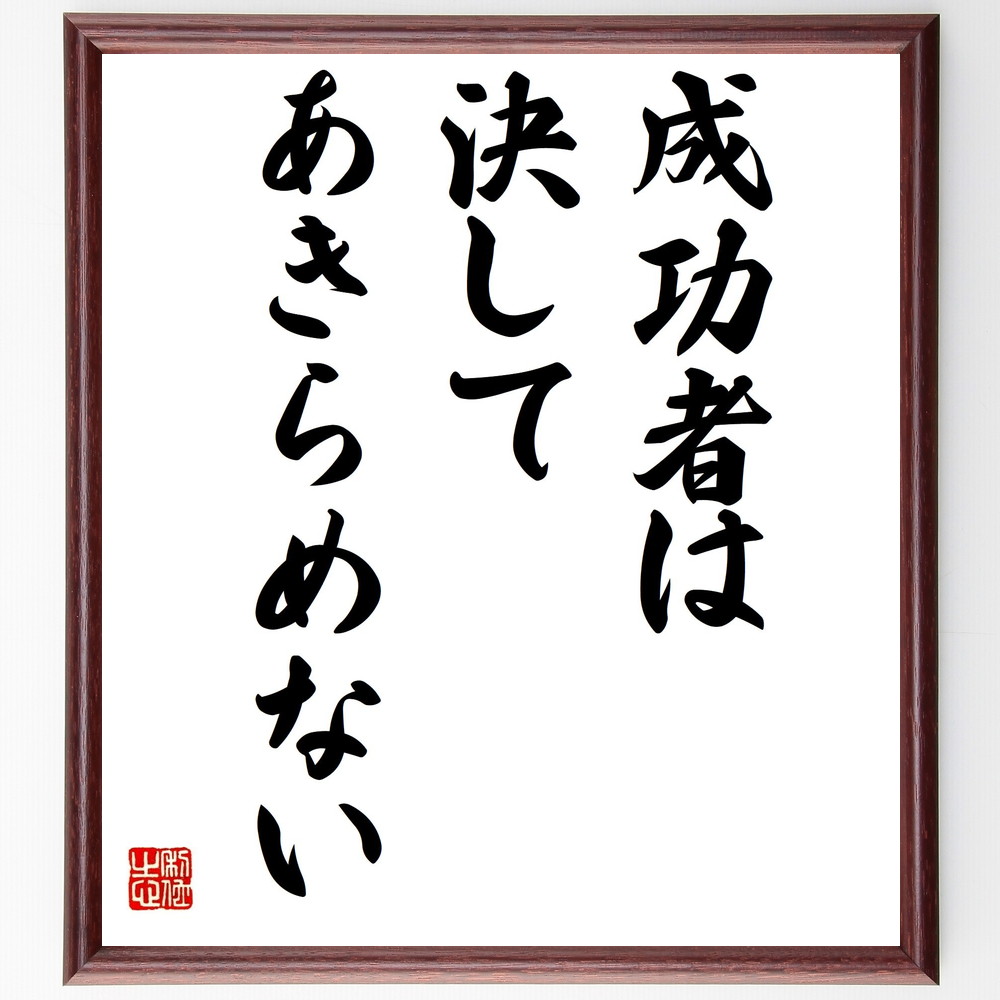 名言「成功者は決してあきらめない」手書き書道色紙額/受注後の毛筆直筆