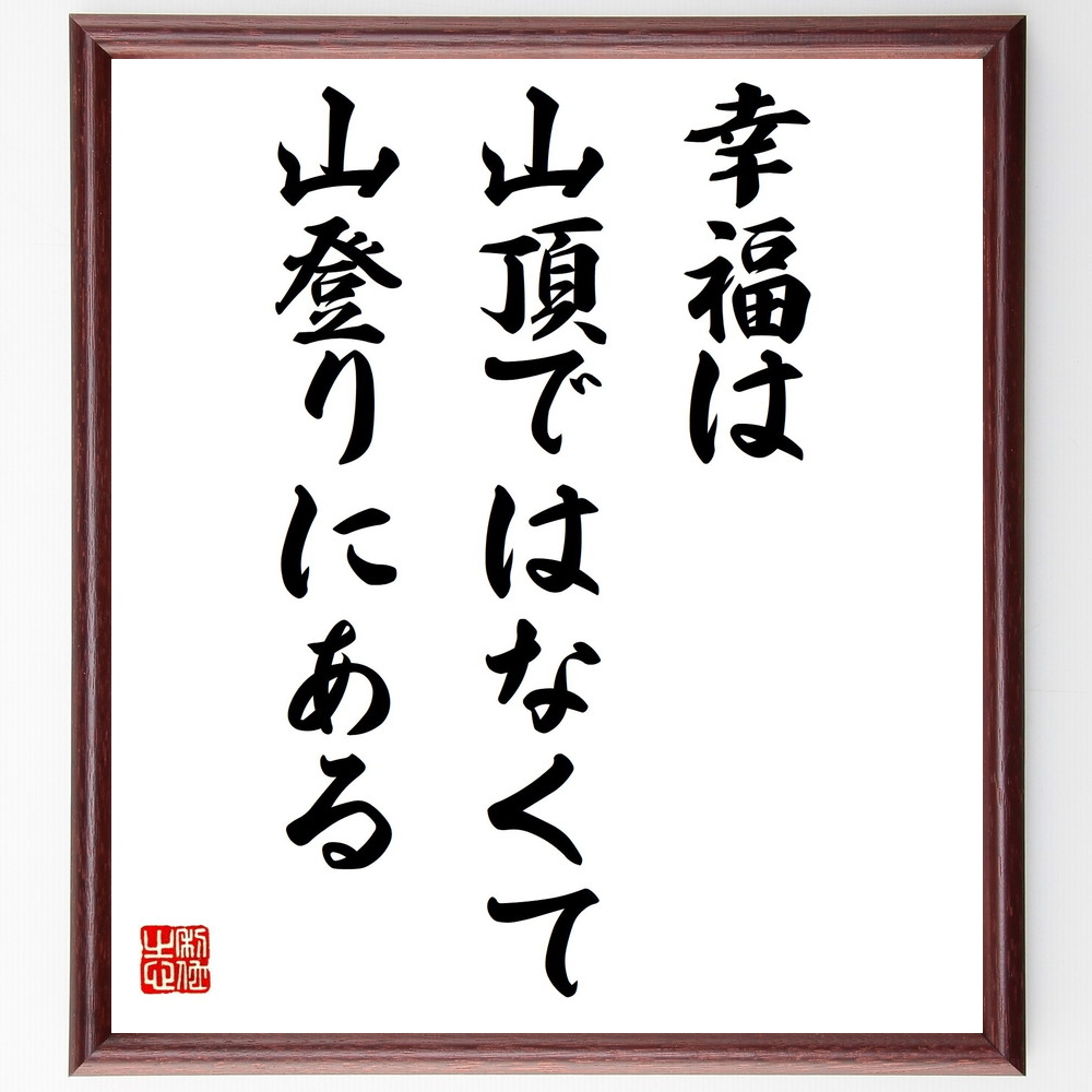名言「幸福は山頂ではなくて山登りにある」手書き書道色紙額/受注後の毛筆直筆