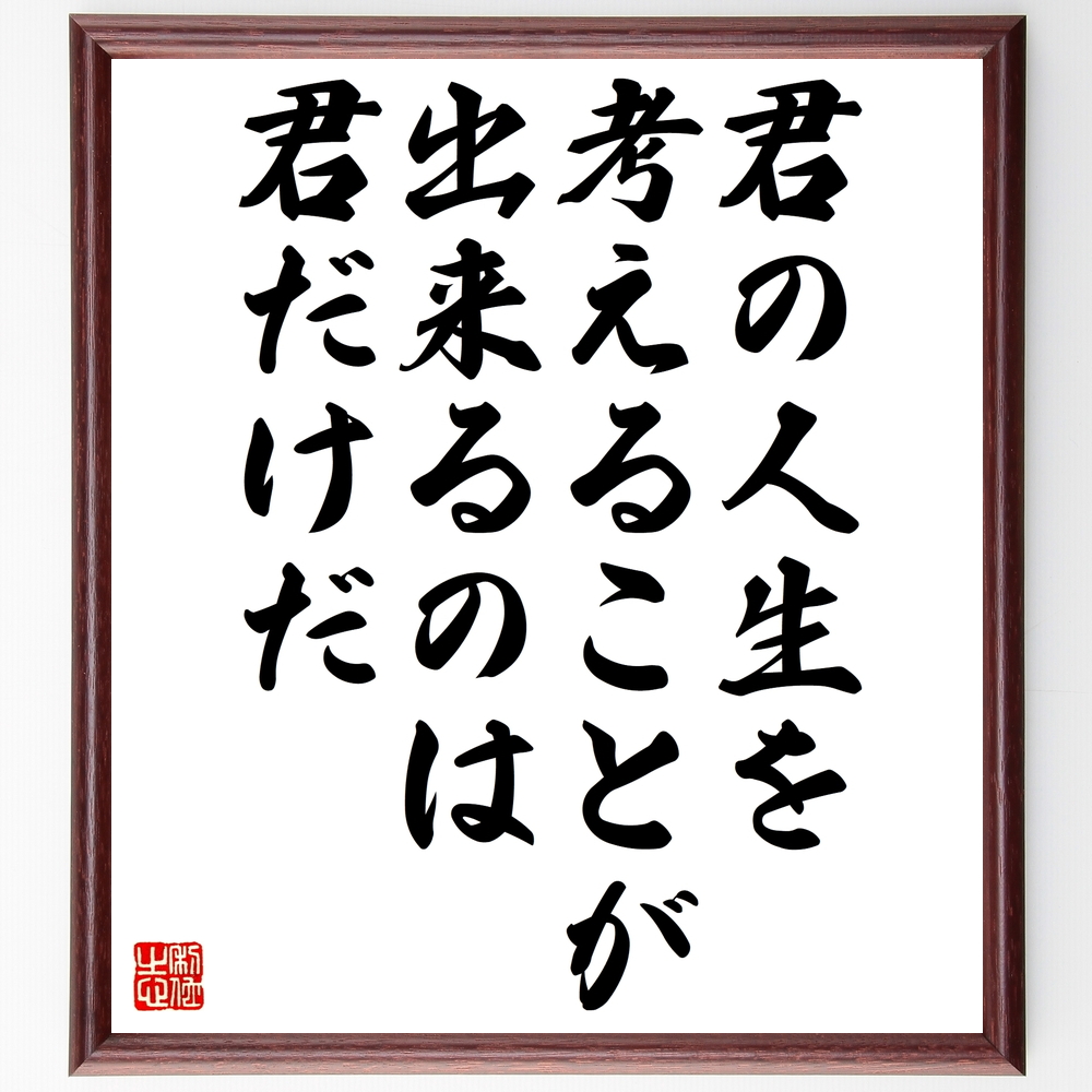 名言「君の人生を考えることが出来るのは君だけだ」手書き書道色紙額/受注後の毛筆直筆