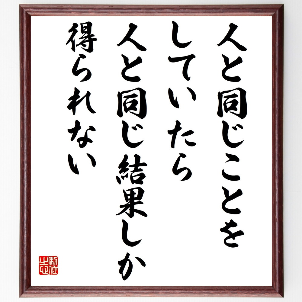 名言「人と同じことをしていたら、人と同じ結果しか得られない」手書き書道色紙額/受注後の毛筆直筆