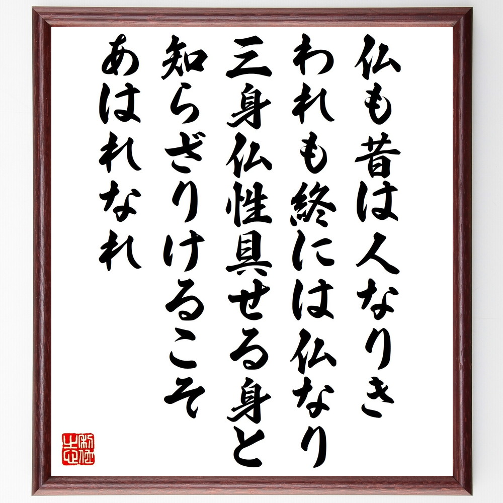 名言「仏も昔は人なりき、われも終には仏なり、三身仏性具せる身と、知らざりけるこそあはれなれ」手書き書道色紙額/受注後の毛筆直筆