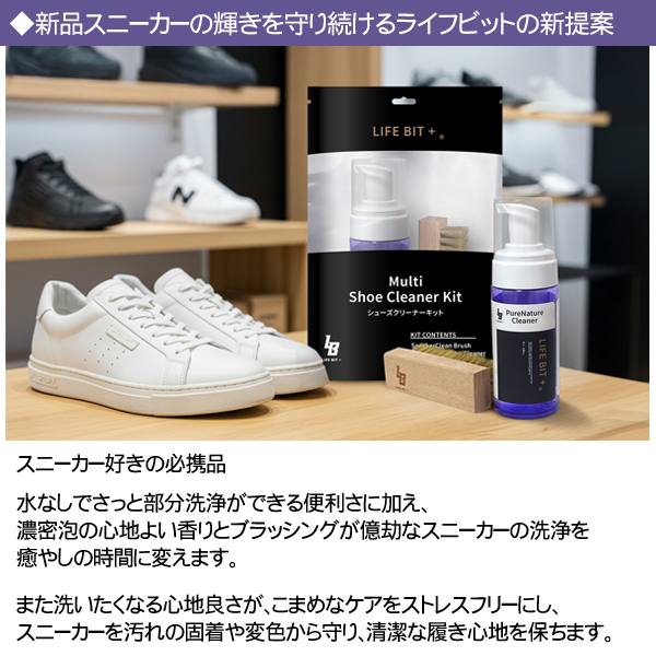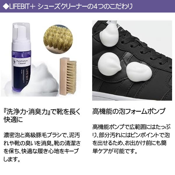 特価 スニーカー シューズケア クリーナー 泡 濃密フォーム 時短 消臭 高級豚毛ブラシ スターターキット 120mL ライフビット LIFEBIT+