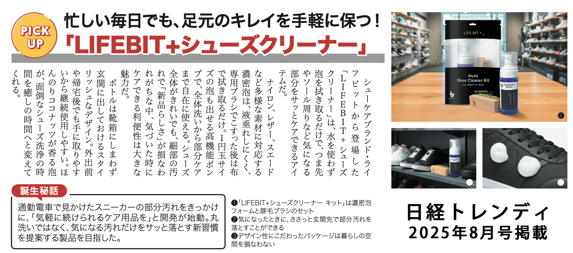 水不要の泡タイプでかんたん靴磨き。心地良い香りの濃密泡とブラッシングで『ふと、また洗いたくなる』シューズクリーナー。