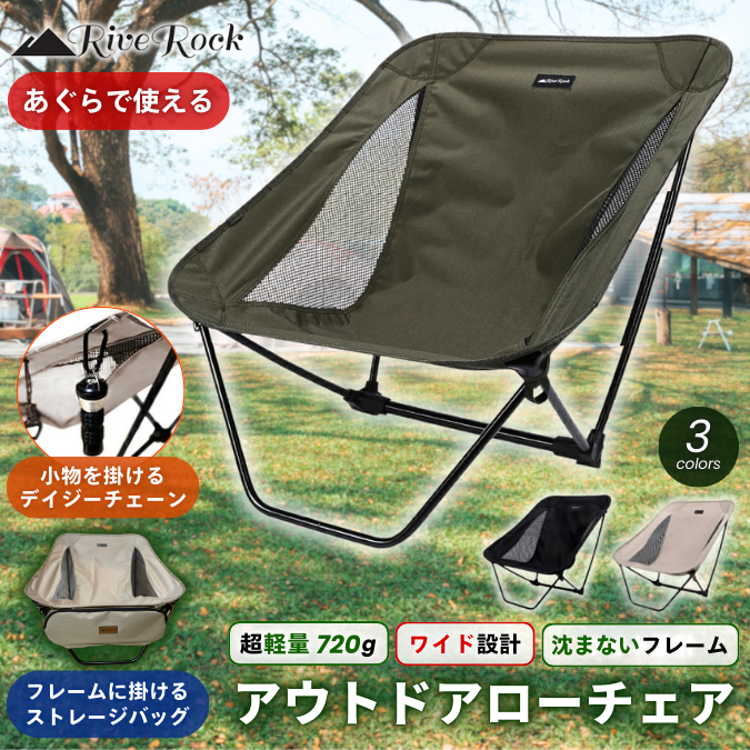 RiveRock (リバロック) アウトドアチェア ローチェア グラウンドチェア 軽量 ワイド座面 コンパクト 折り畳み あぐら 安心保障