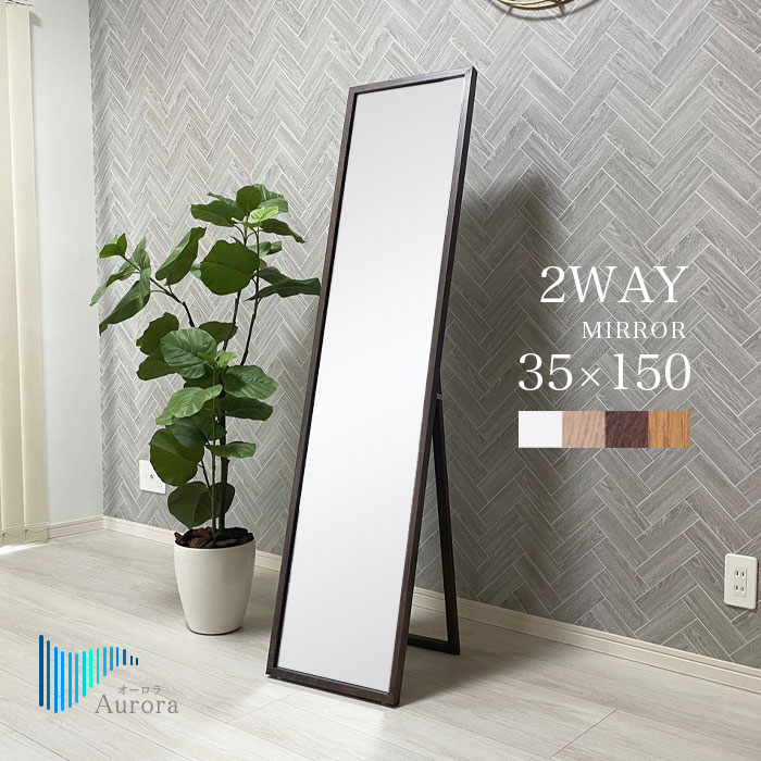 全身鏡 スタンドミラー 全身ミラー 姿見 鏡 ウォールミラー 壁掛け ミラー 幅35cm 高さ150cm 木製 木目調 飛散防止 完成品 収納 軽量 軽い 北欧 おしゃれ orr