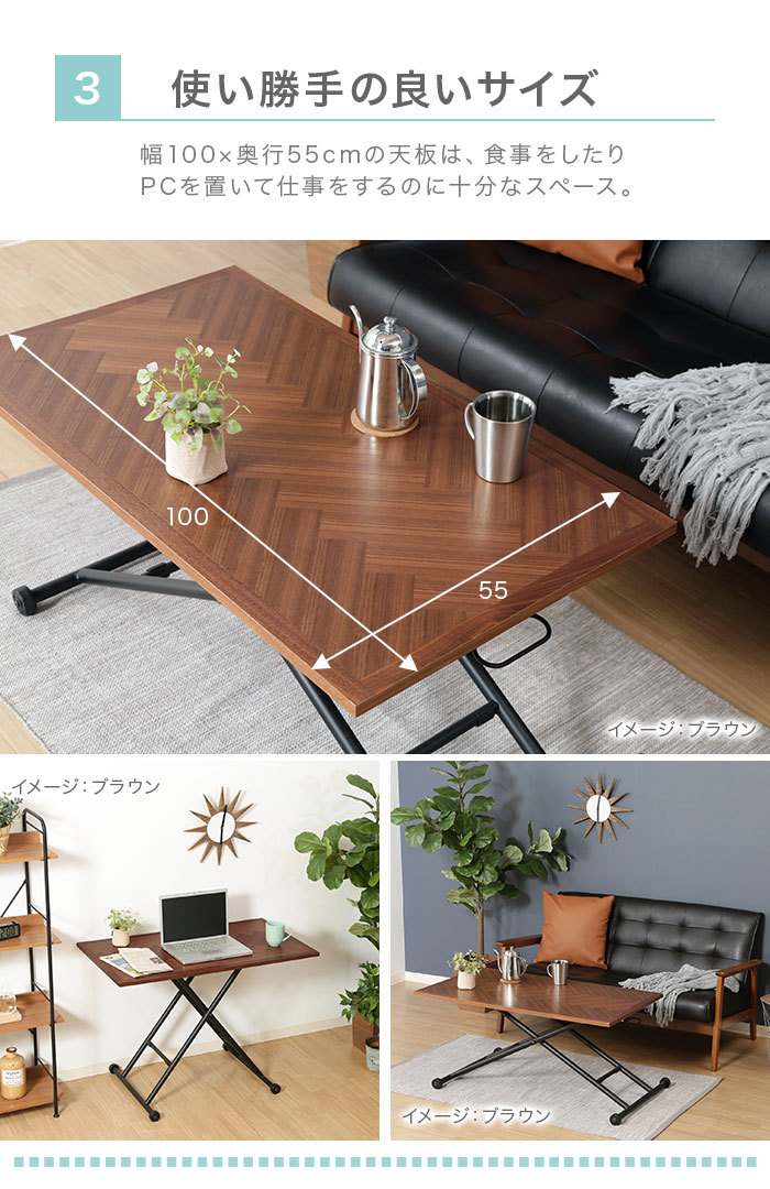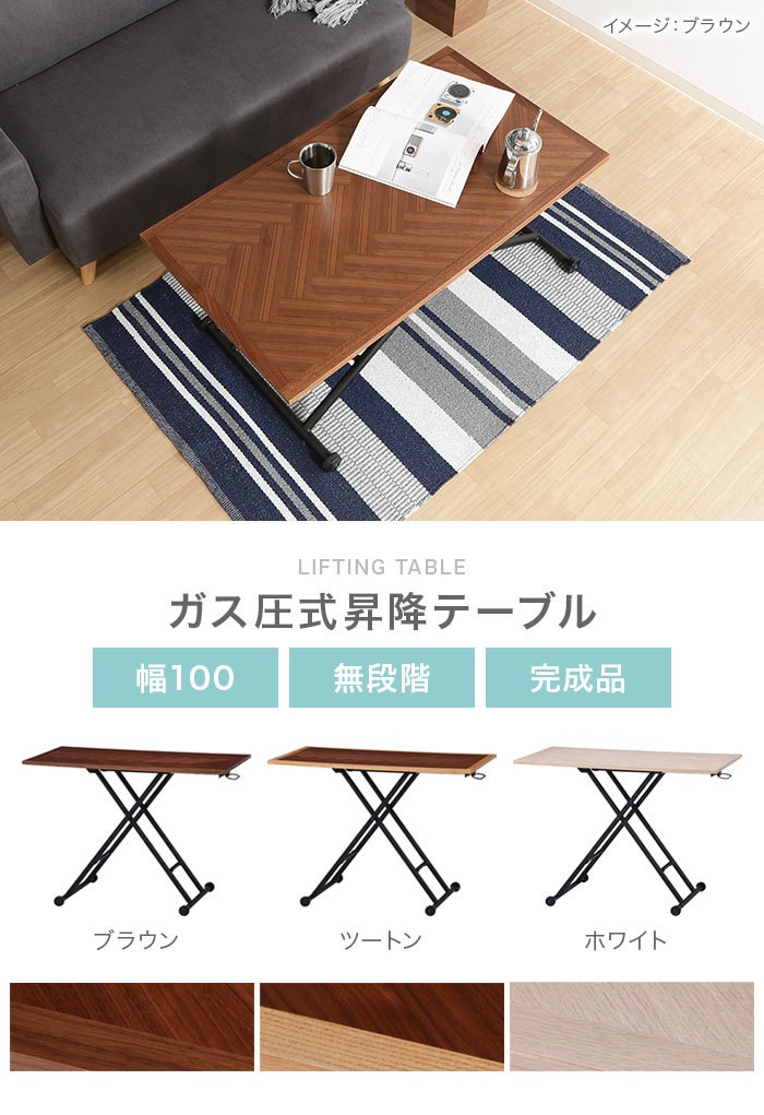 昇降テーブル 幅100 木目調 デスク 折りたたみ ガス圧 昇降式 テーブル 無段階 高さ調節 キャスター付き 完成品 北欧 一人暮らし 新生活 アウトレット 人気