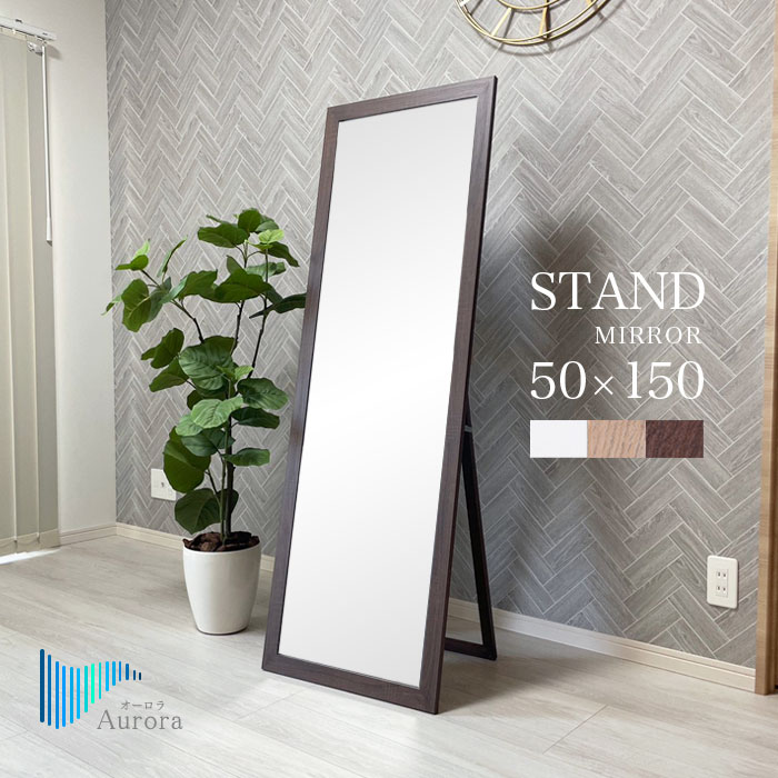 全身鏡 スタンドミラー 全身ミラー 姿見 鏡 ミラー 幅50cm 高さ150cm 木製 木目調 飛散防止 完成品 収納 軽量 軽い 北欧 シンプル おしゃれ 折りたたみ 薄型 orr
